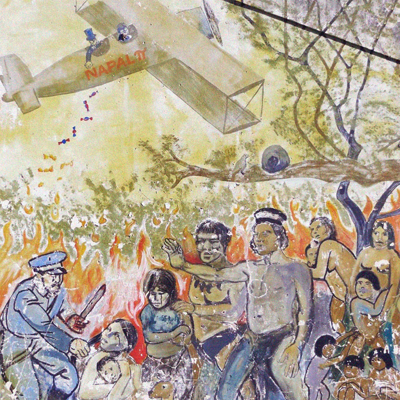 | Mural de la Masacre de Napalpí en la plaza central de Colonia Aborigen Chaco. |